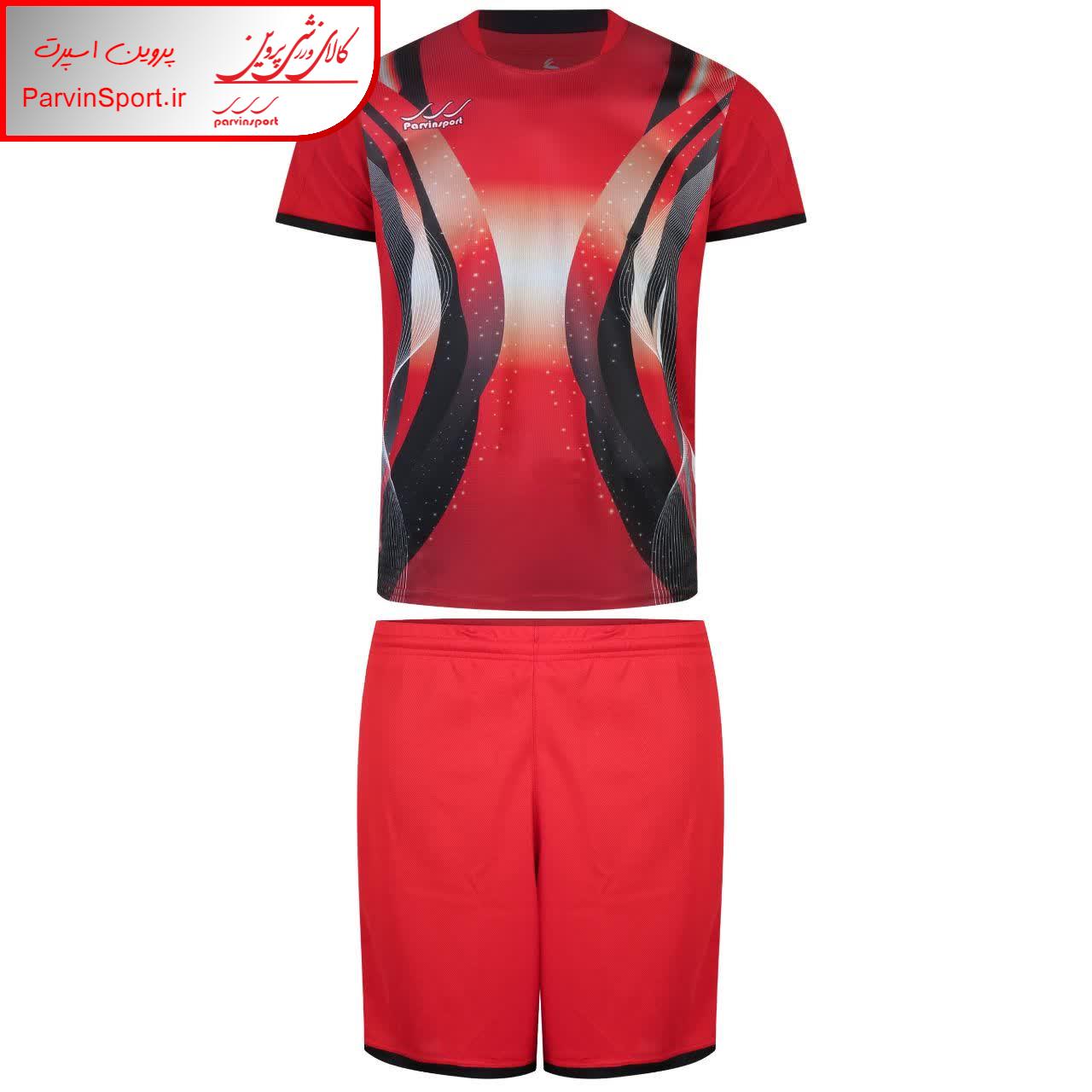 ست تی شرت و شلوارک ورزشی مردانه کالای ورزشی پروین مدل a.s.i.x.6 رنگ قرمز